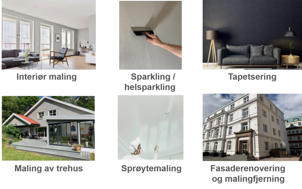 Med solid kvalitet utfører vi de fleste typer malerarbeider for private, boligsameier og offentlige etater. Vi har flere tiårs allsidig erfaring og god fagutdanning. Vårt mål er at du som kunde alltid er fornøyd